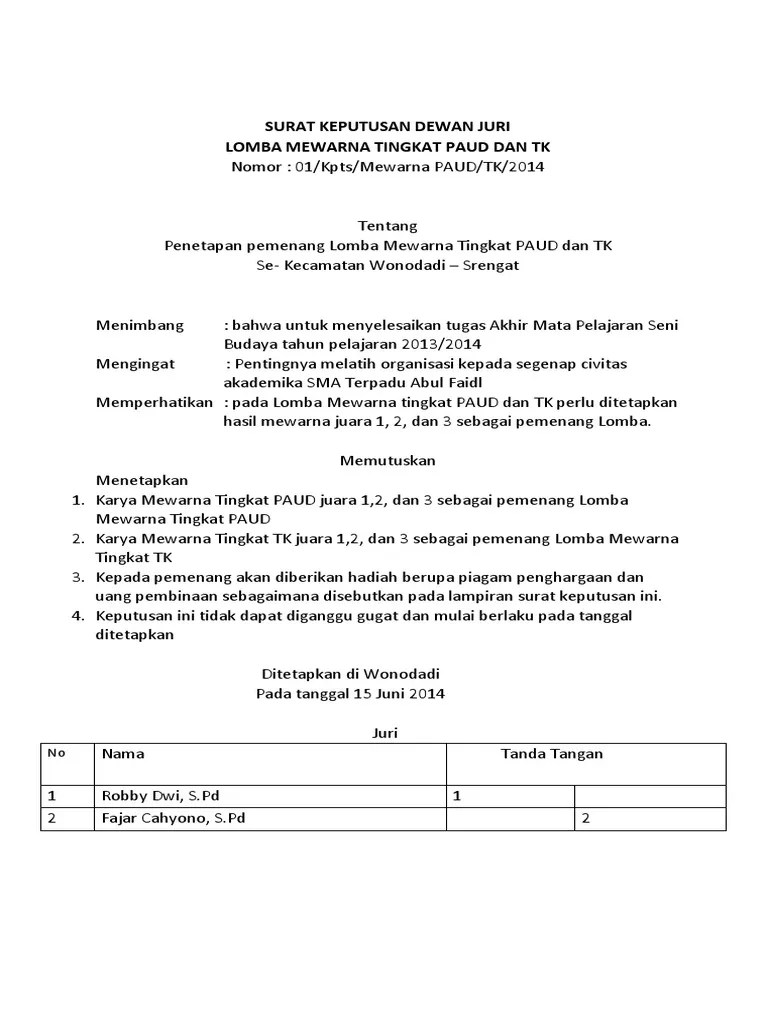 Bahwa dalam rangka penetapan hasil dan pemenang lomba bercerita anak. Kumpulan gambar tentang surat keputusan dewan juri, klik untuk melihat koleksi gambar lain di. Rangka perayaan hari ulang tahun kemerdekaan. Sk penetapan pemenang lks xxiv tahun 2016. Sk penetapan daftar peserta osn sdmi tingkat nasional tahun.