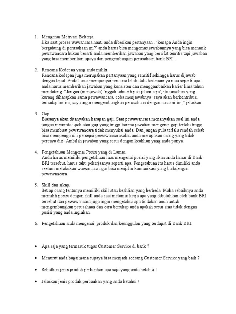 Karena soal soal yang diujikan dalam tes psikotes hanya berisi kemampuan . Banyak orang yang gagal interview karena mereka tidak mengetahui etika interview. Solusinya adalah dengan mempelajari contoh dari pertanyaan yang mungkin akan ditanyakan saat wawancara kerja berlangsung dan ini bisa dipelajari . Saat ini saya masih bekerja sebagai brand manajer di pt. Berikut adalah berbagai contoh pertanyaan wawancara kerja beserta jawabannya untuk fresh graduate maupun yang sudah berpengalaman.
